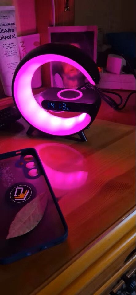 Functiebeschrijving: 15W Snel draadloos opladen, sfeerlamp, bedlampje, oogverblindend lichteffect, Bluetooth-audio, luidsprekerspelen en Aux, TF, tijd, wekkermodus.