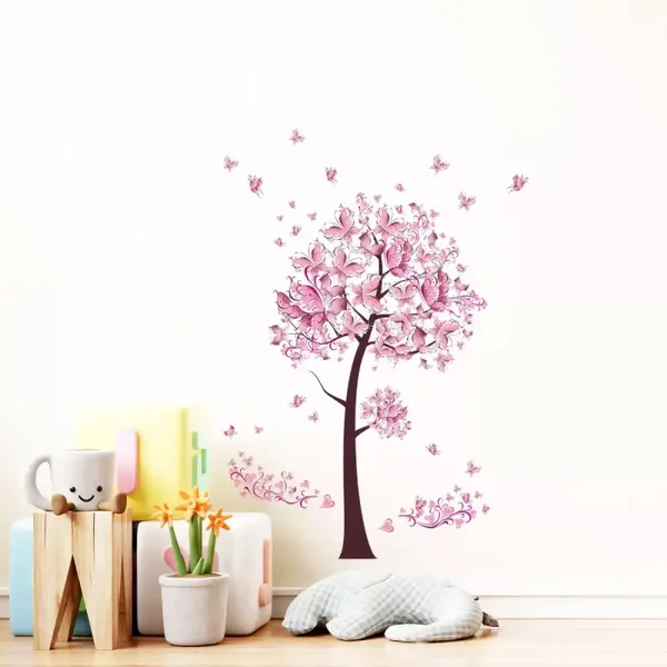 Pink Butterfly Flower Tree Wall Stickers – Vinyl Mural Decals