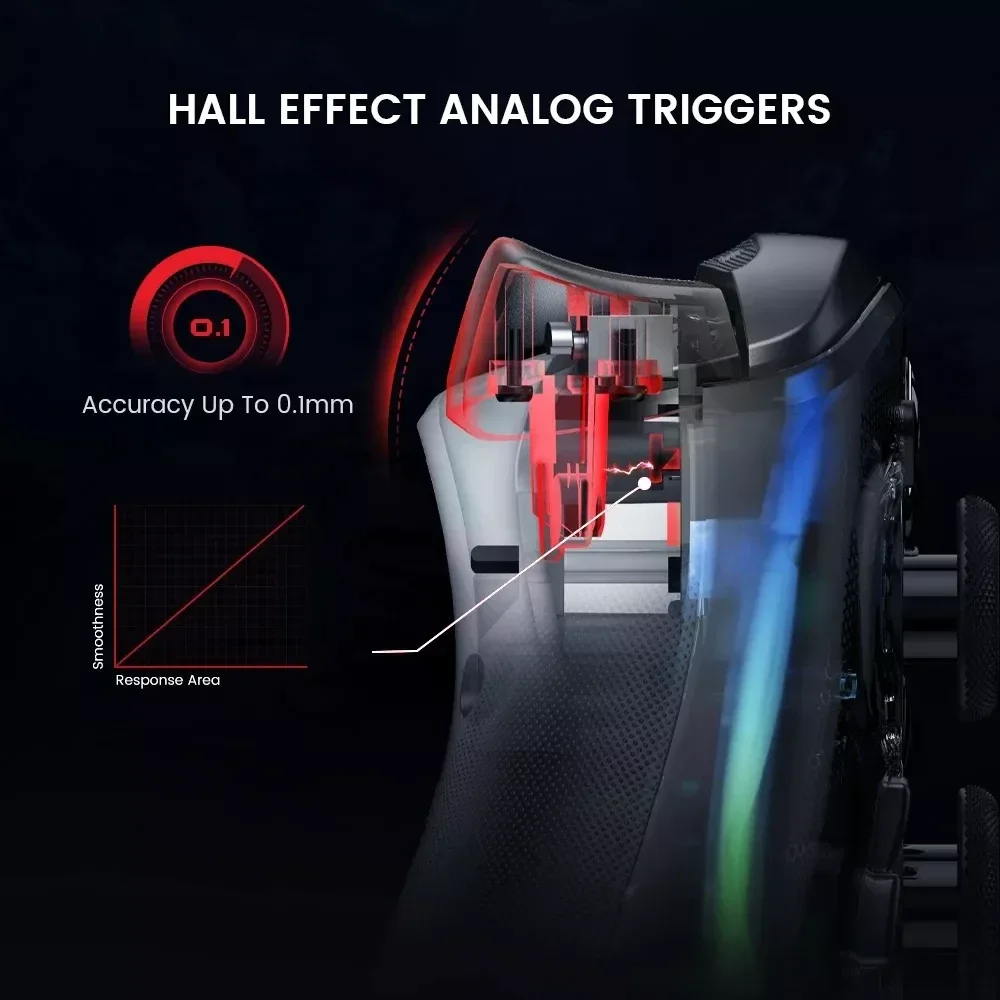 - Hall Effect Sensing Sticks: Enjoy a responsive, drift-free glide for ultimate precision in every move.