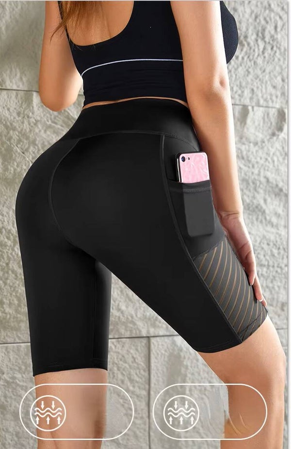 Dames Sport Yoga Shorts Knielengte Broek Fitness Hoge Taille Heuplift Hardlopen Yoga Zijzakken Panty Sneldrogende Gym Sportkleding