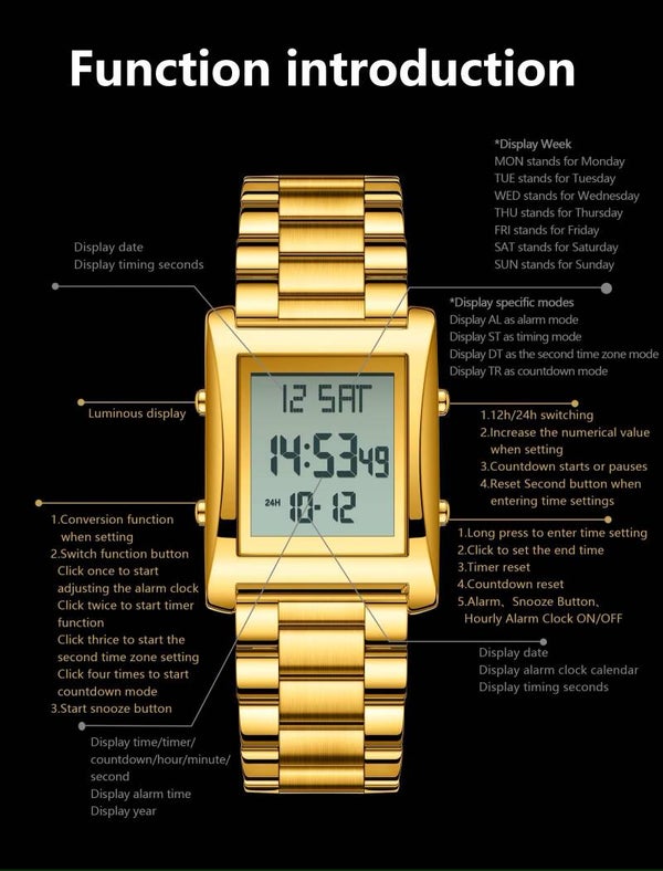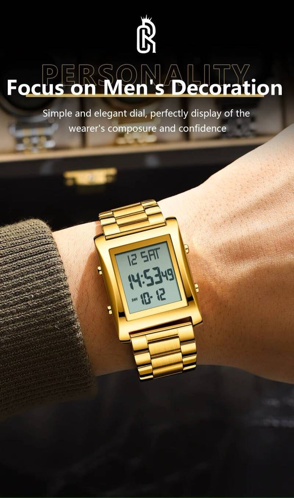 β‘ Slim design | π§ Waterdicht (50M) | β Roestvrij staal | β Modern rechthoekig design | π Datum & Weekdag | π Alarmfunctie
