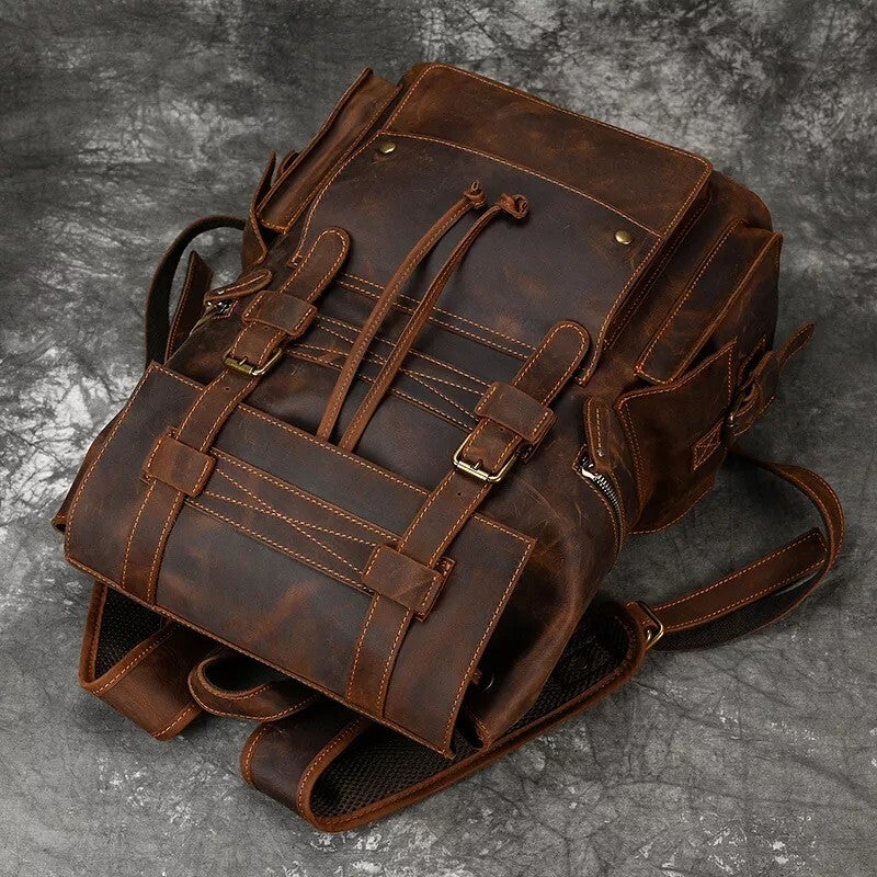Large Genuine Leather Laptop Backpack – 17″ Vintage Travel Daypack
